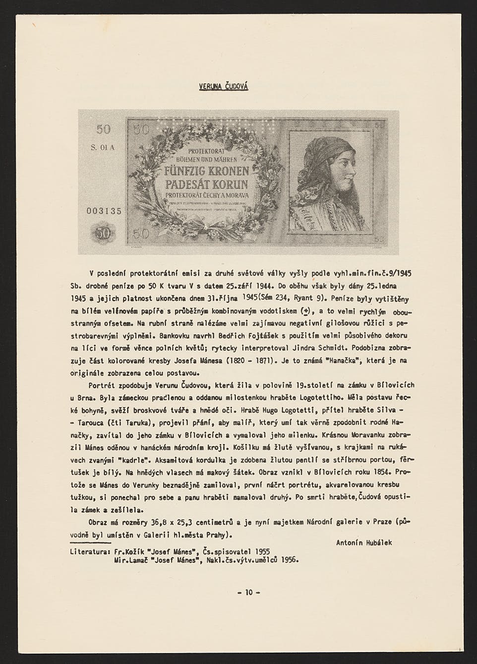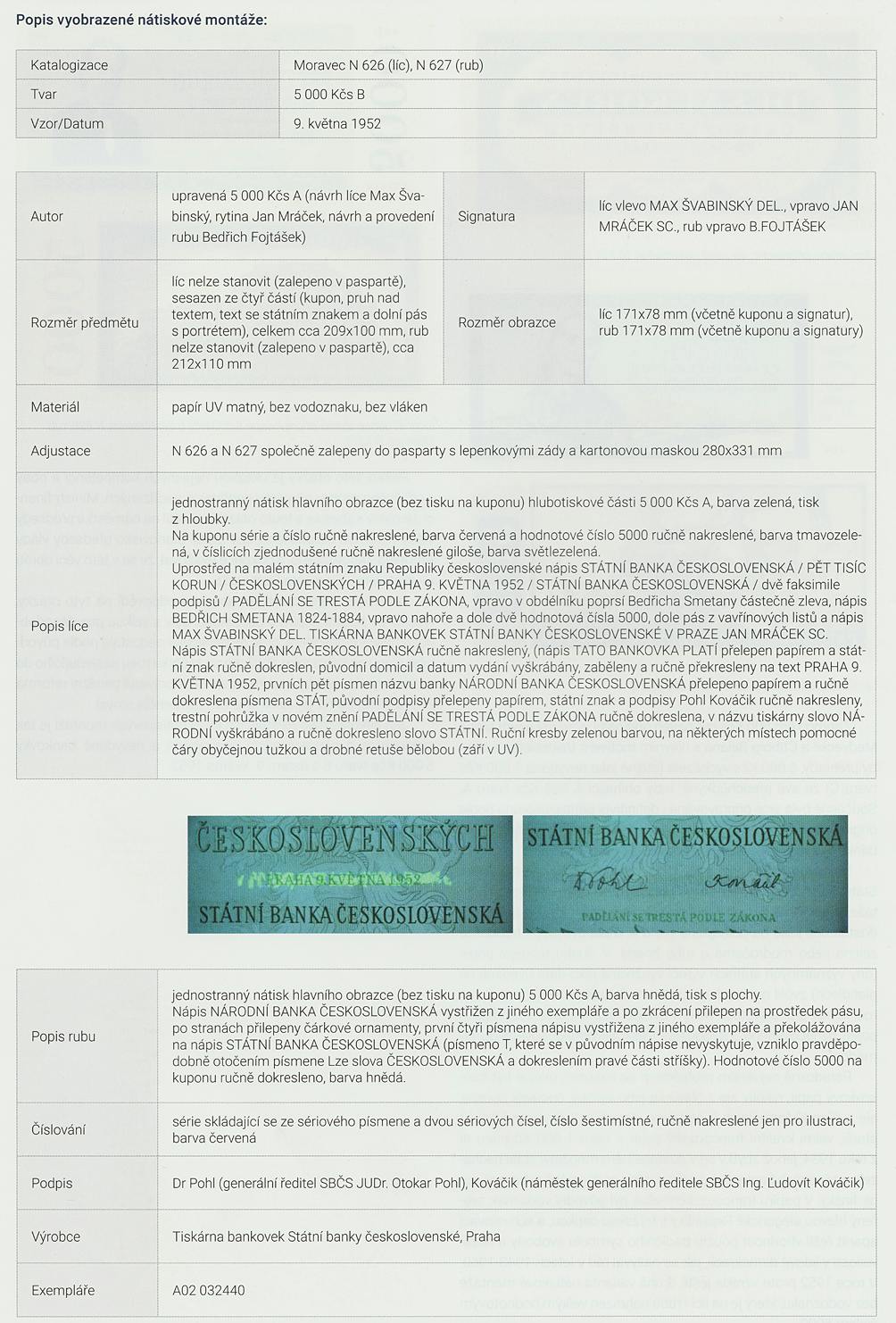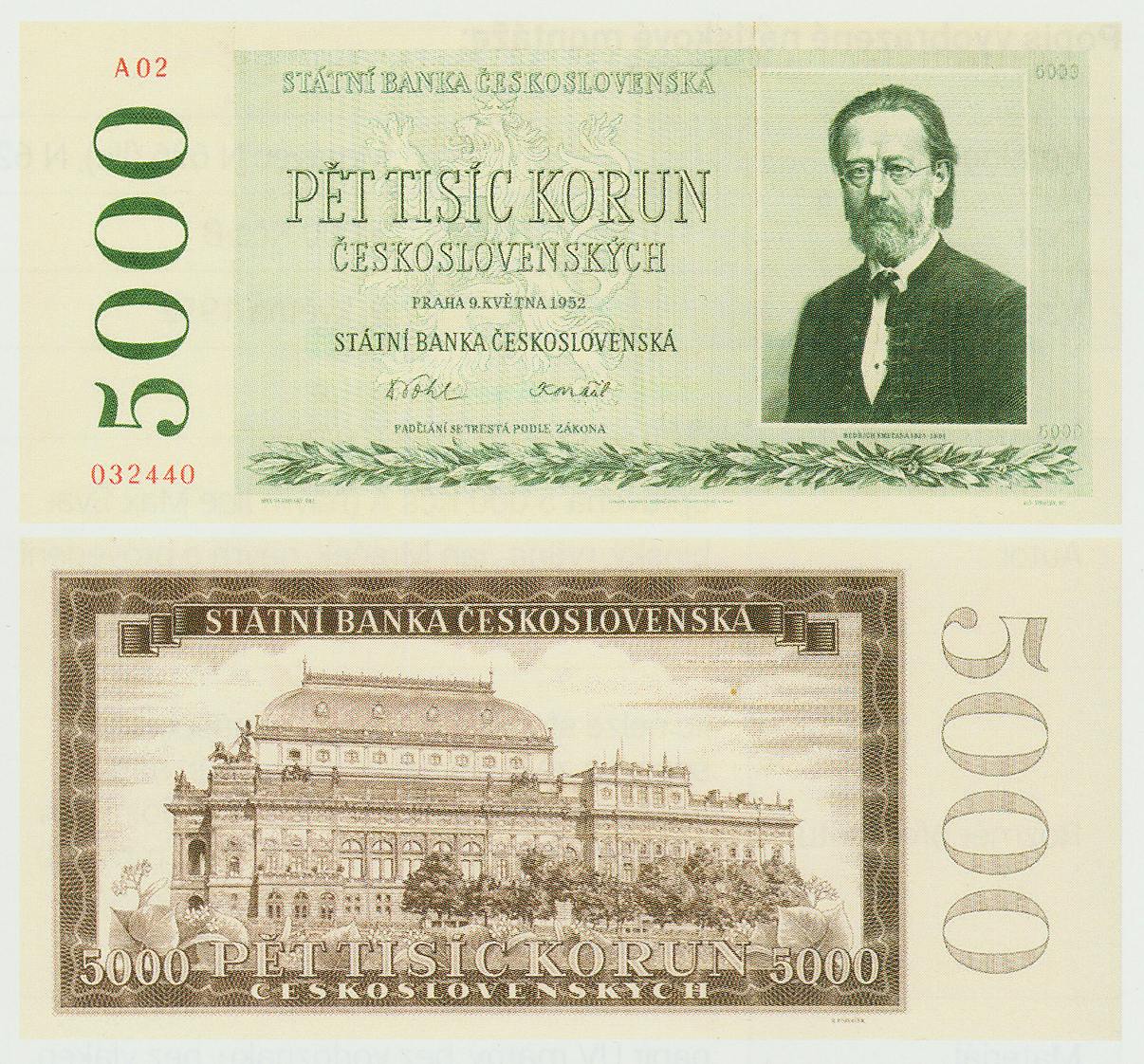 “5000 Kčs, 9.5.1952 - připravovaná, avšak nikdy nevydaná a nevytištěná bankovka ”